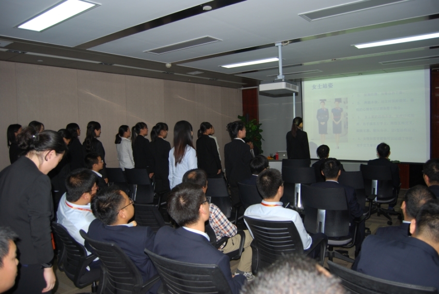 通過女士和男士日常行為的示范,讓同事們知道了符合職場(chǎng)禮儀的站姿、坐姿、行走、下蹲等標(biāo)準(zhǔn),讓大家印象深刻。