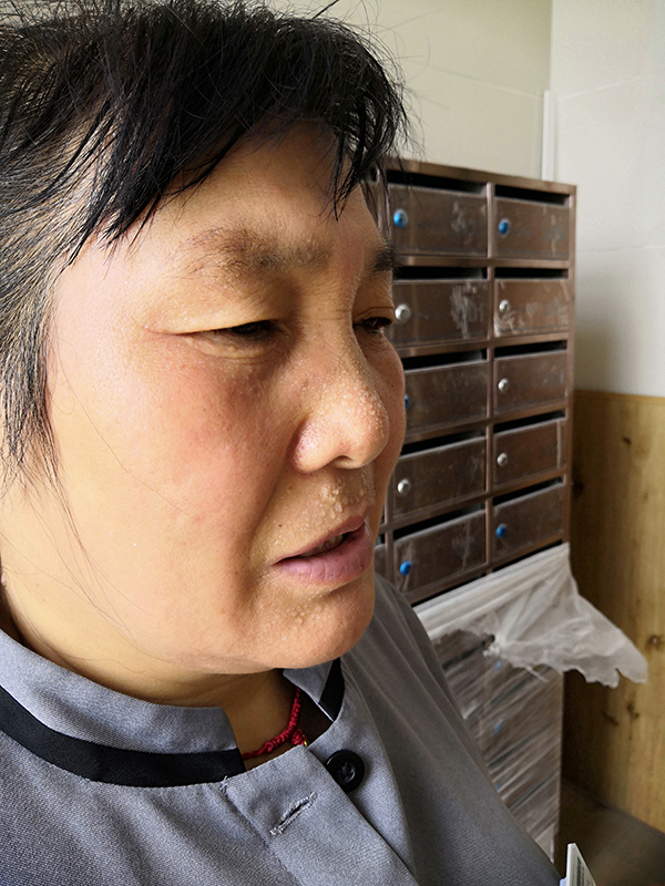 尚大姐負責廟李家園東苑7號樓2單元一個34層的高層住宅。在這集中交付裝修高峰期,她日復一日,每天提前來到工作崗位,對自己的工作區域,進行衛生日常清潔、打掃、開荒工作。2019年7月23日大暑時節,經過一夜的空氣沉淀不流通,加上裝修污染,樓道空氣混濁,高強度工作下,尚大姐有些中暑,喝了物業中心送來的解暑藥品,逐漸轉好。在公司強烈要求其需要回家好好休息時,尚大姐有所好轉站起身,又迅速投入到自己的工作崗位。她用樸實的語言說:“我休息一會就行了,現在裝修多,我要多巡視!