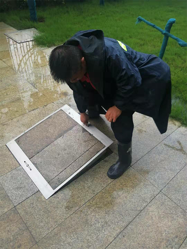 汛前做好下水管、污水井、污水泵檢查,備好防汛沙袋。下雨時,及時巡查排水設施,檢查天臺、地庫有無積水,地庫入口堆放沙袋。