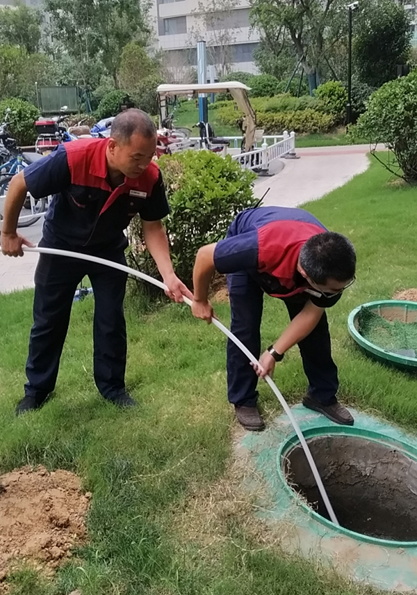 對(duì)照室外管網(wǎng)圖和實(shí)際情況,對(duì)所有污水井、集水坑、化糞池、雨水井及其附屬管線進(jìn)行檢查,并檢查排水管線與周邊市政排水管網(wǎng)的接口,發(fā)現(xiàn)井蓋和井篦破損、管線堵塞(例如:管線坍塌、有積水、有雜物等),及時(shí)維修或清理,并注意做好檢查、清理和維修的工作記錄。
