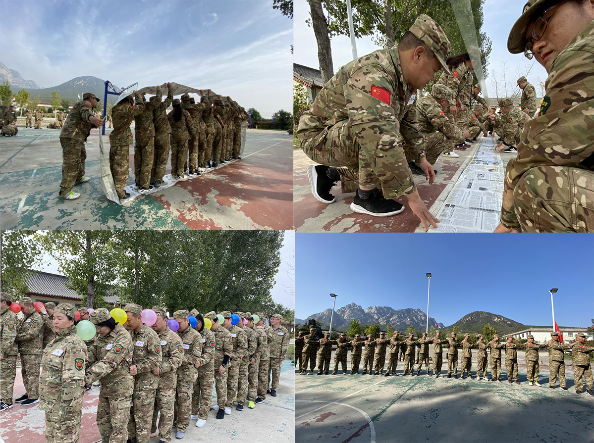 進行隊形隊列等軍事科目訓練的同時還開展了摸石過河、百發百中、挑戰150等訓練項目。雖然在150秒內有隊伍沒有完成全部項目,但是大家都沒有放棄,一個項目一個項目地攻克,直至完成所有項目。